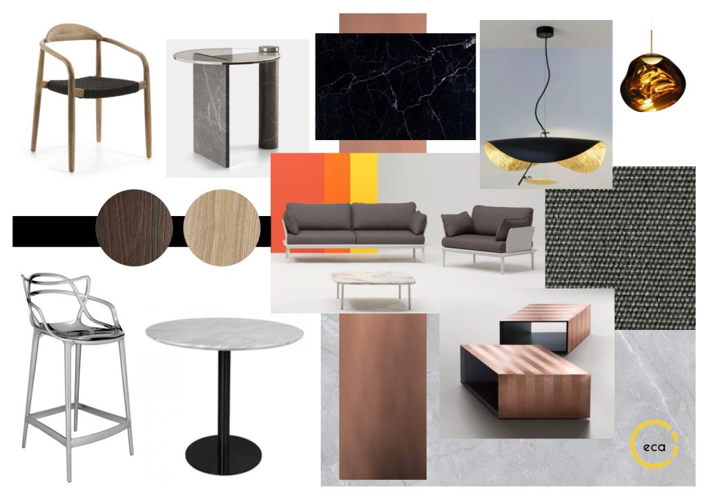 Moodboard – este o compozitie de imagini, texturi, culori, mostre de material, produse, care sa ilustreze un concept, o atmosfera, o stare si care impreuna cu releveul sta la baza proiectarii